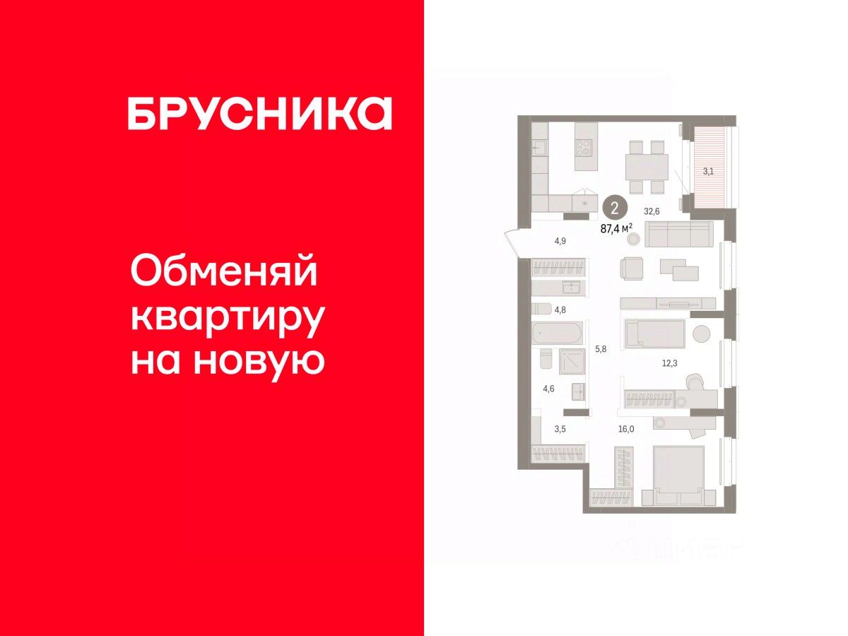 Просторная 2-комн. квартира с предчистовой отделкой в Кварталы "На Минской" на 7 этаже. Общая площадь: 87.38 кв.м. Высота потолков 2.7 м.