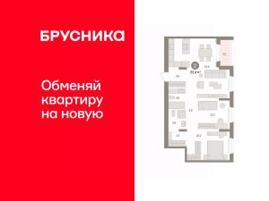 Квартира с кухней-гостиной и двумя спальнями в кварталах "На Минской". Особенности планировки: мастер-спальня, предчистовая отделка.