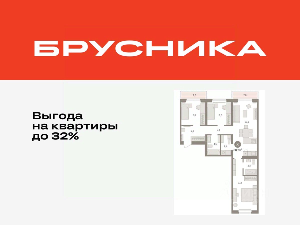 Квартира с кухней-гостиной и тремя спальнями в кварталах "На Минской". Особенности планировки: панорамное остекление, разнесённые спальни, предчистовая отделка, мастер-спальня, постирочная, балкон.