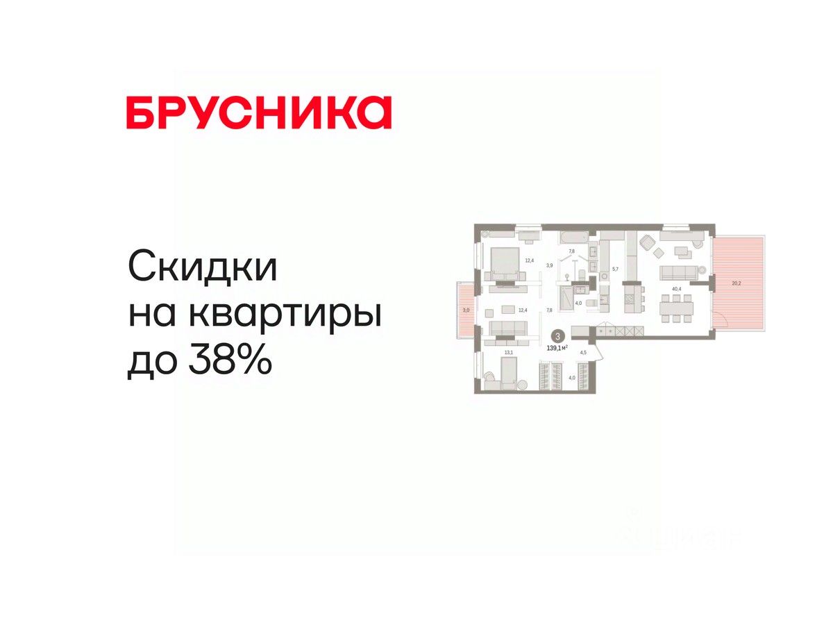 Трехкомнатная квартира с предчистовой отделкой в Кварталы "На Минской" на 2 этаже. Общая площадь: 139.11 кв.м. Высота потолков 2.7 м.