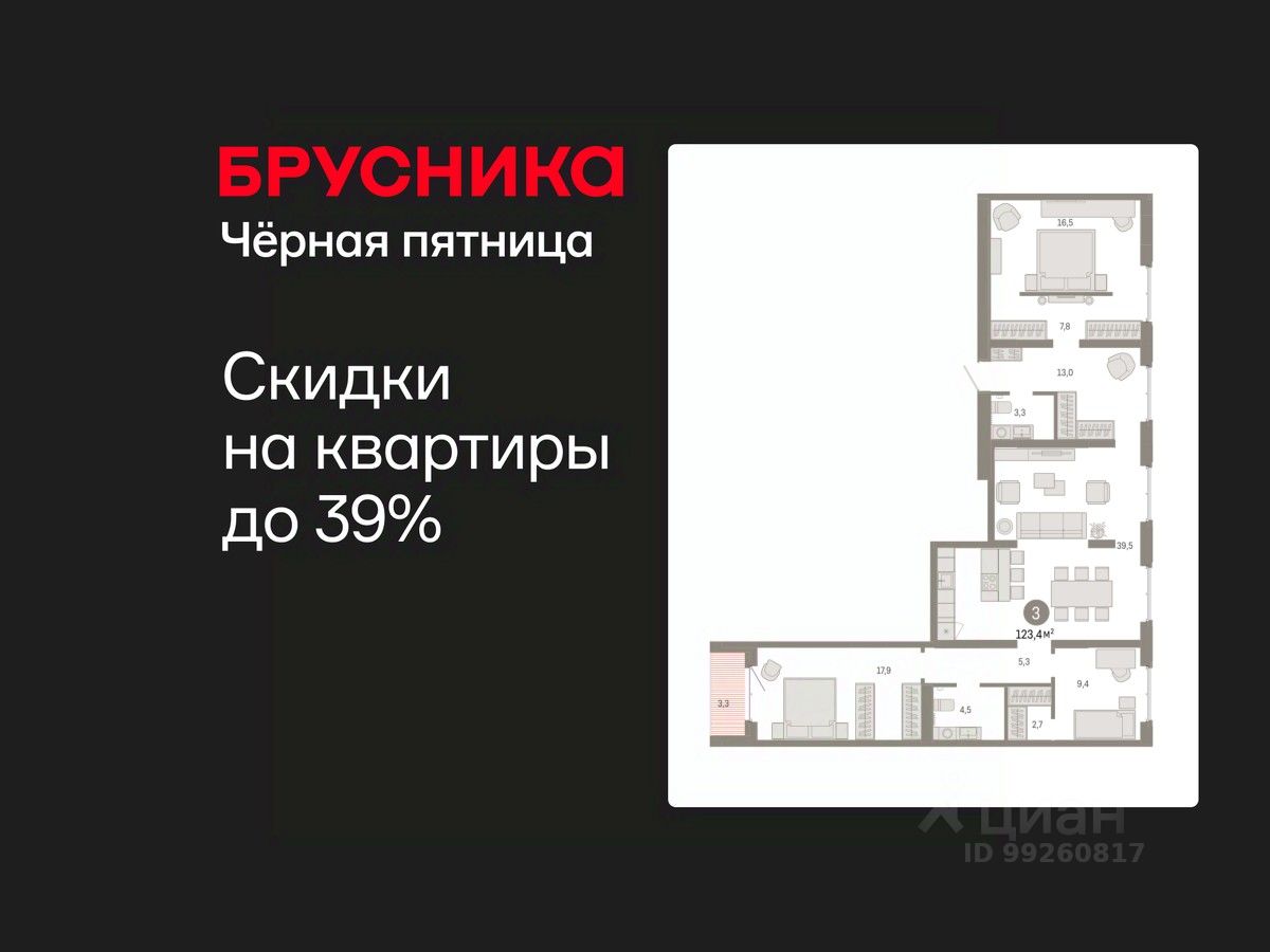 Просторная 3-комн. квартира с предчистовой отделкой в Кварталы "На Минской" на 10 этаже. Общая площадь: 123.35 кв.м. Высота потолков 2.7 м.