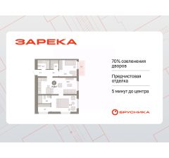 Квартира с кухней-гостиной и двумя спальнями в жилом районе "Зарека". Особенности планировки: гардеробная, разнесённые спальни, предчистовая отделка, мастер-спальня, балкон.