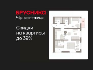 Квартира с кухней-гостиной и двумя спальнями в жилом районе "Зарека". Особенности планировки: гардеробная, разнесённые спальни, предчистовая отделка, мастер-спальня, балкон.