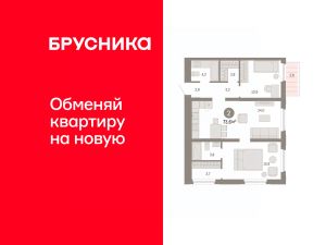 Квартира с кухней-гостиной и двумя спальнями в жилом районе "Зарека". Особенности планировки: балкон, гардеробная, мастер-спальня, предчистовая отделка, разнесённые спальни.