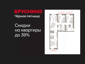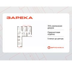 Квартира с кухней-гостиной и тремя спальнями в жилом районе "Зарека". Особенности планировки: разнесённые спальни, предчистовая отделка, мастер-спальня, постирочная, балкон.