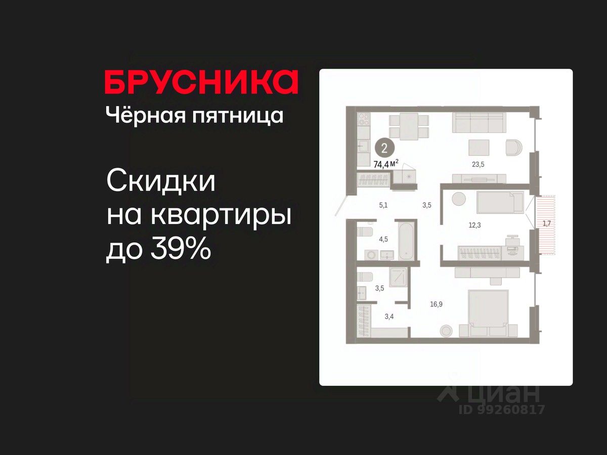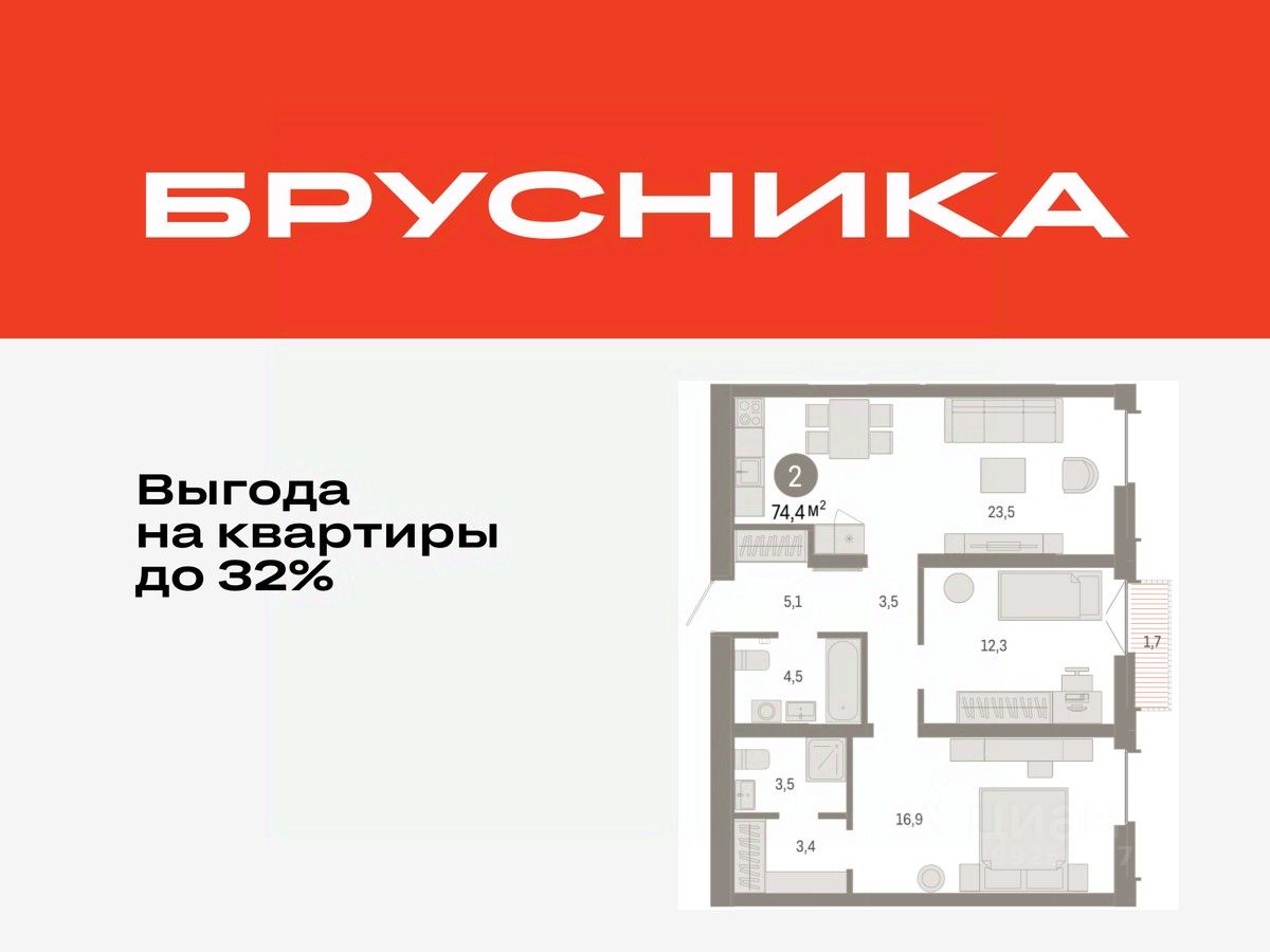 Продается 2-комн. квартира с предчистовой отделкой в ЖК "Республики 205" на 10 этаже. Общая площадь: 74.41 кв.м. Высота потолков 2.7 м.