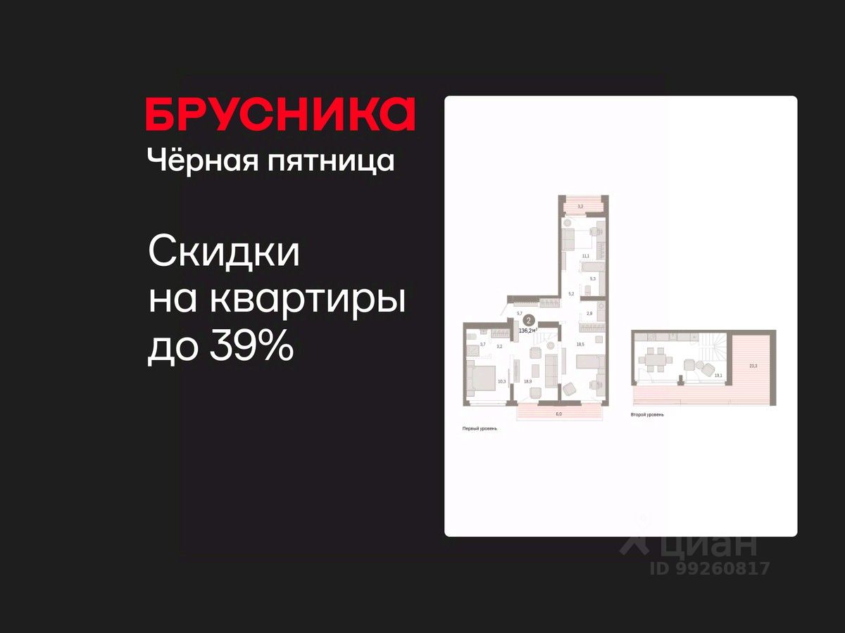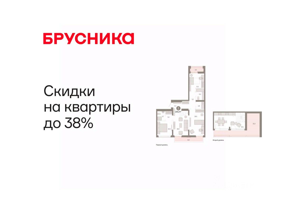 Двухкомнатная квартира от застройщика с предчистовой отделкой в ЖК "Республики 205" на 8 этаже. Общая площадь: 136.21 кв.м. Высота потолков 2.7 м.