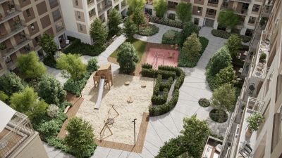 Пешеходные бульвары внутри района соединят между собой улицу ресторанов, детские и спортивные площадки, событийную площадь и летний кинотеатр.