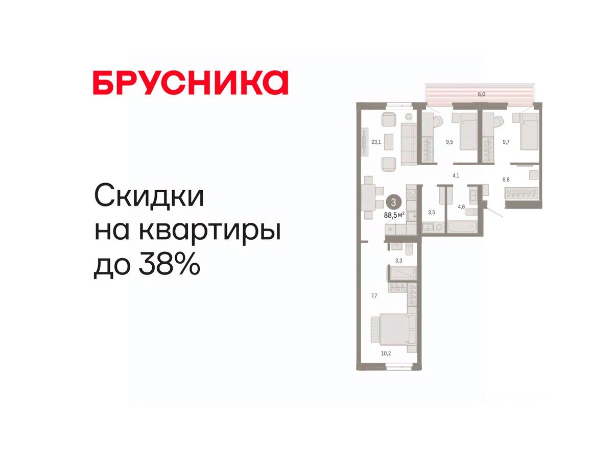 Просторная трехкомнатная квартира с предчистовой отделкой в ЖК "Республики 205" на 4 этаже. Общая площадь: 88.47 кв.м., жилая: 29.4 кв.м., площадь просторной кухни-гостиной: 23.1 кв.м. Квартира - распашонка, без проходных комнат, окна выходят на paзные стороны дома. В квартире два балкона, два совмещенных санузла. Высота потолков 2.7 м.