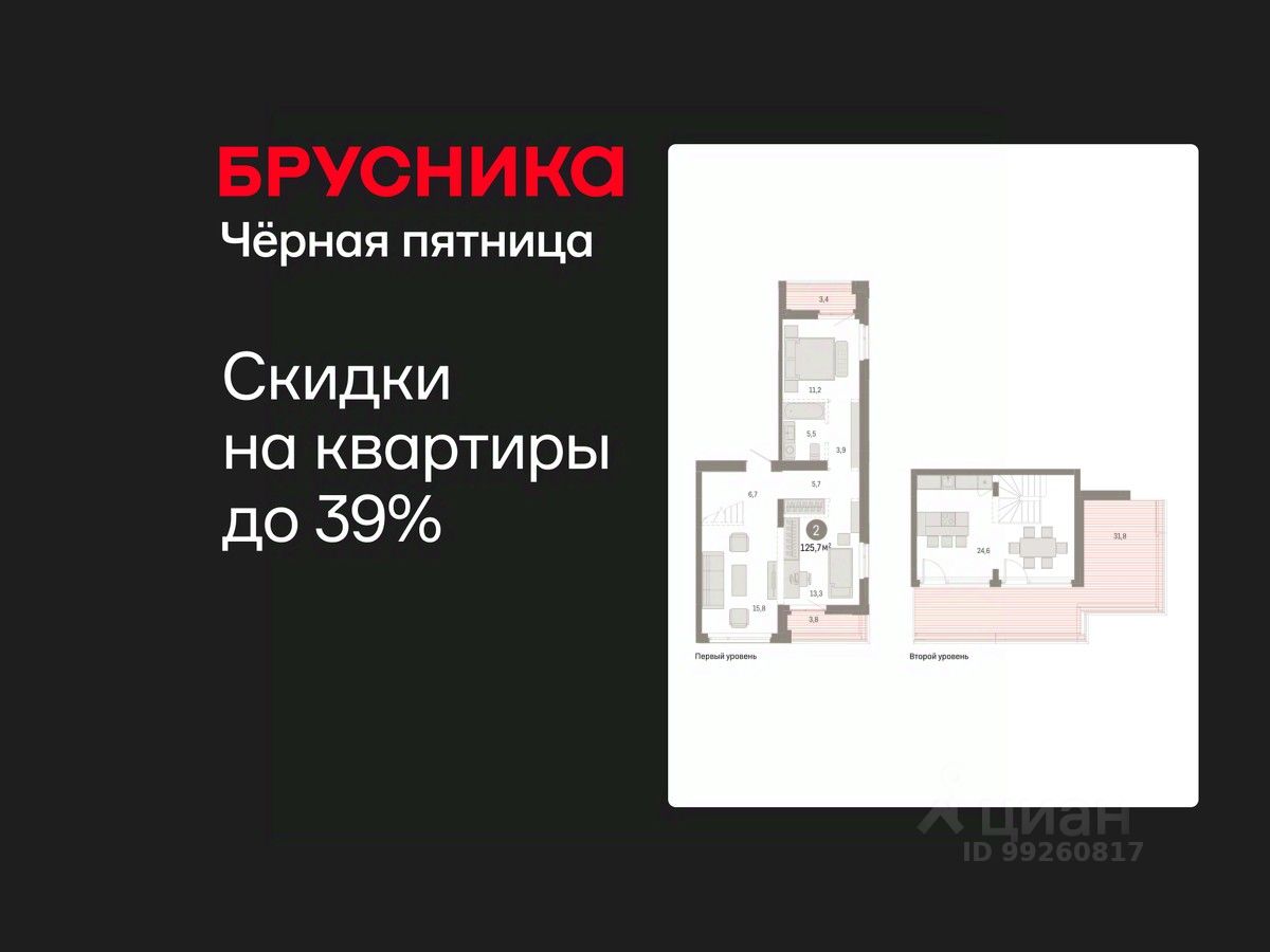 Двухкомнатная квартира с предчистовой отделкой в ЖК "Республики 205" на 8 этаже. Общая площадь: 125.69 кв.м. Высота потолков 2.7 м.