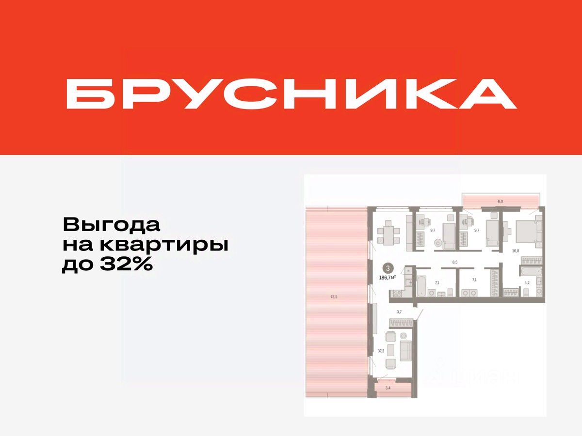3-комн. квартира с предчистовой отделкой в ЖК "Республики 205" на 3 этаже. Общая площадь: 186.65 кв.м. Высота потолков 2.7 м.