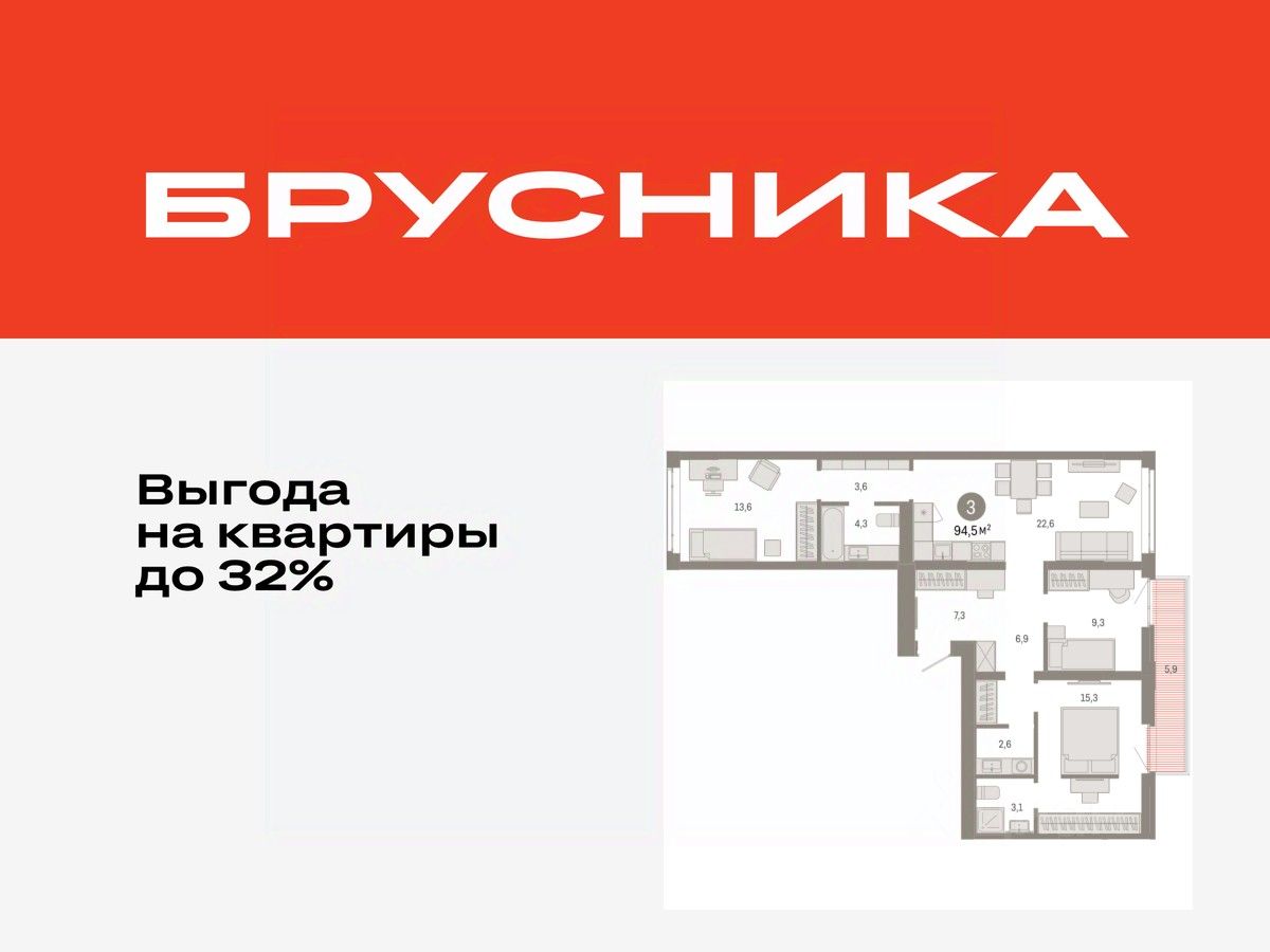 3-комн. квартира от застройщика с предчистовой отделкой в ЖК "Республики 205" на 6 этаже. Общая площадь: 94.45 кв.м., жилая: 38.2 кв.м., площадь просторной кухни-гостиной: 22.6 кв.м. Квартира - распашонка, без проходных комнат, окна выходят на paзные стороны дома. В квартире два балкона, два совмещенных санузла. Высота потолков 2.7 м.