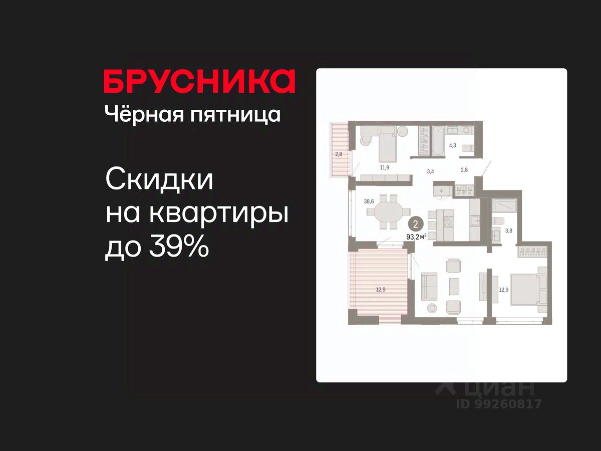 2-комн. квартира от застройщика с предчистовой отделкой в ЖК "Республики 205" на 3 этаже. Общая площадь: 93.18 кв.м., жилая: 24.8 кв.м., площадь просторной кухни-гостиной: 38.6 кв.м. Квартира угловая, окна oбecпeчивaют paвнoмepнoe ocвeщeниe в тeчeниe дня. В квартире один балкон и одна лоджия, два совмещенных санузла. Наличие террасы в квартире дает возможность для обустройства дополнительной площади. Высота потолков 2.7 м.