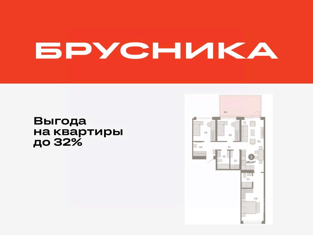 Трехкомнатная квартира с предчистовой отделкой в ЖК "Республики 205" на 2 этаже. Общая площадь: 100.44 кв.м. Высота потолков 2.7 м.