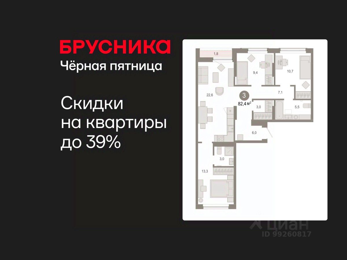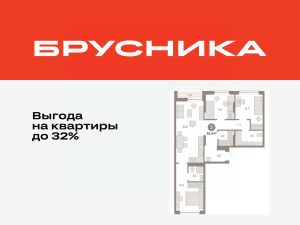 Квартира с кухней-гостиной и тремя спальнями в Октябрьском на Туре. Особенности планировки: гардеробная, вид во двор, лоджия, разнесённые спальни, предчистовая отделка, мастер-спальня.