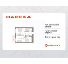 Квартира с кухней-гостиной и одной спальней в жилом районе "Зарека". Особенности планировки: предчистовая отделка, балкон.