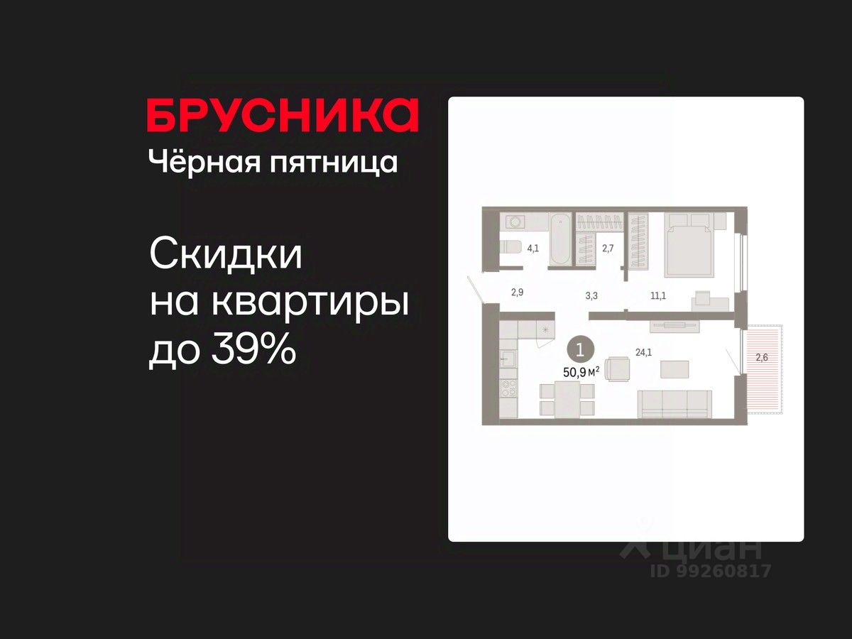 Однокомнатная квартира от застройщика с предчистовой отделкой в ЖК "Зарека" на 4 этаже. Общая площадь: 50.87 кв.м., жилая: 11.1 кв.м., площадь просторной кухни-гостиной: 24.1 кв.м. Все окна выходят на одну сторону. В квартире один балкон, один совмещенный санузел. Высота потолков 2.7 м.