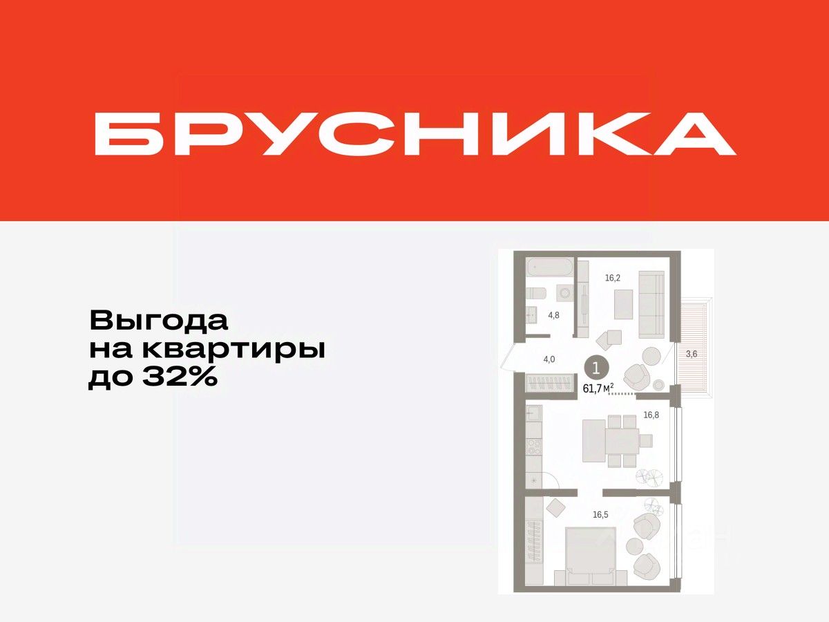 Просторная 1-комн. квартира с предчистовой отделкой в ЖК "Зарека" на 6 этаже. Общая площадь: 61.65 кв.м., жилая: 16.2 кв.м., площадь просторной кухни-гостиной: 16.8 кв.м. Все окна выходят на одну сторону. В квартире один балкон, один совмещенный санузел. Высота потолков 2.7 м.