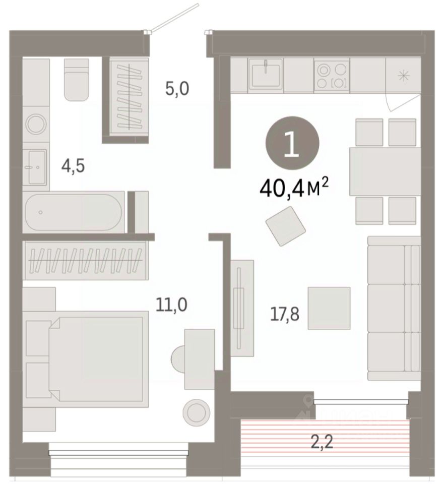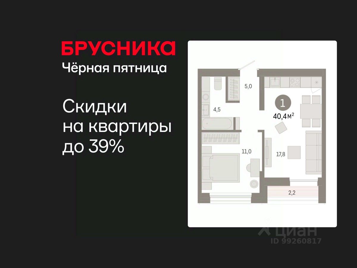 Продается однокомнатная квартира с предчистовой отделкой в ЖК "Республики 205" на 9 этаже. Общая площадь: 40.44 кв.м., жилая: 11 кв.м., площадь просторной кухни-гостиной: 17.8 кв.м. Все окна выходят на одну сторону. В квартире одна лоджия, один совмещенный санузел. Высота потолков 2.6 м.