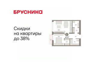 Однокомнатная квартира с предчистовой отделкой в ЖК "Республики 205" на 9 этаже. Общая площадь: 44.1 кв.м., жилая: 8.9 кв.м., площадь просторной кухни-гостиной: 16 кв.м. Все окна выходят на одну сторону. В квартире один балкон, один совмещенный санузел. Высота потолков 2.7 м.