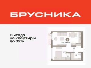 Продается 1-комн. квартира с предчистовой отделкой в ЖК "Республики 205" на 7 этаже. Общая площадь: 44.84 кв.м., жилая: 9.9 кв.м., площадь просторной кухни-гостиной: 20.9 кв.м. Все окна выходят на одну сторону. В квартире один балкон, один совмещенный санузел. Высота потолков 2.7 м.