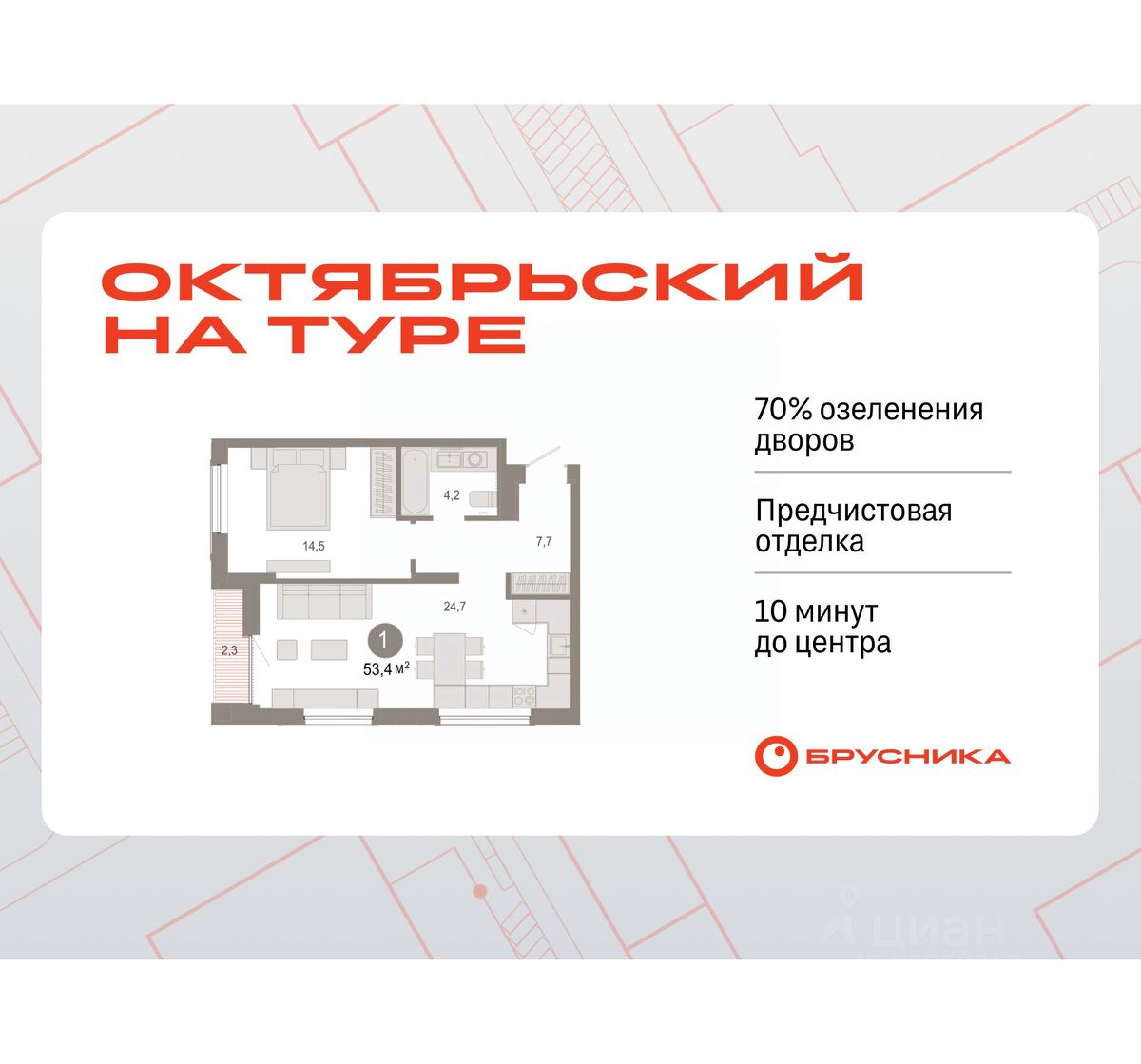 Квартира с кухней-гостиной и одной спальней в Октябрьском на Туре. Особенности планировки: лоджия, предчистовая отделка.