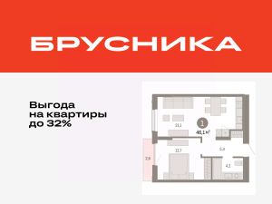 Квартира с кухней-гостиной и одной спальней в Октябрьском на Туре. Особенности планировки: предчистовая отделка, балкон.