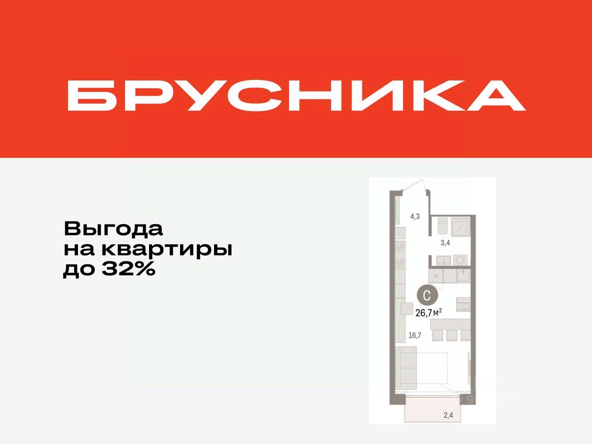 Студия в Октябрьском на Туре. Особенности планировки: окна в пол, предчистовая отделка, балкон.