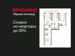 Квартира с кухней-гостиной и тремя спальнями в кварталах "На Минской". Особенности планировки: окна на две стороны, гардеробная, вид во двор, разнесённые спальни, предчистовая отделка, мастер-спальня, постирочная, балкон.