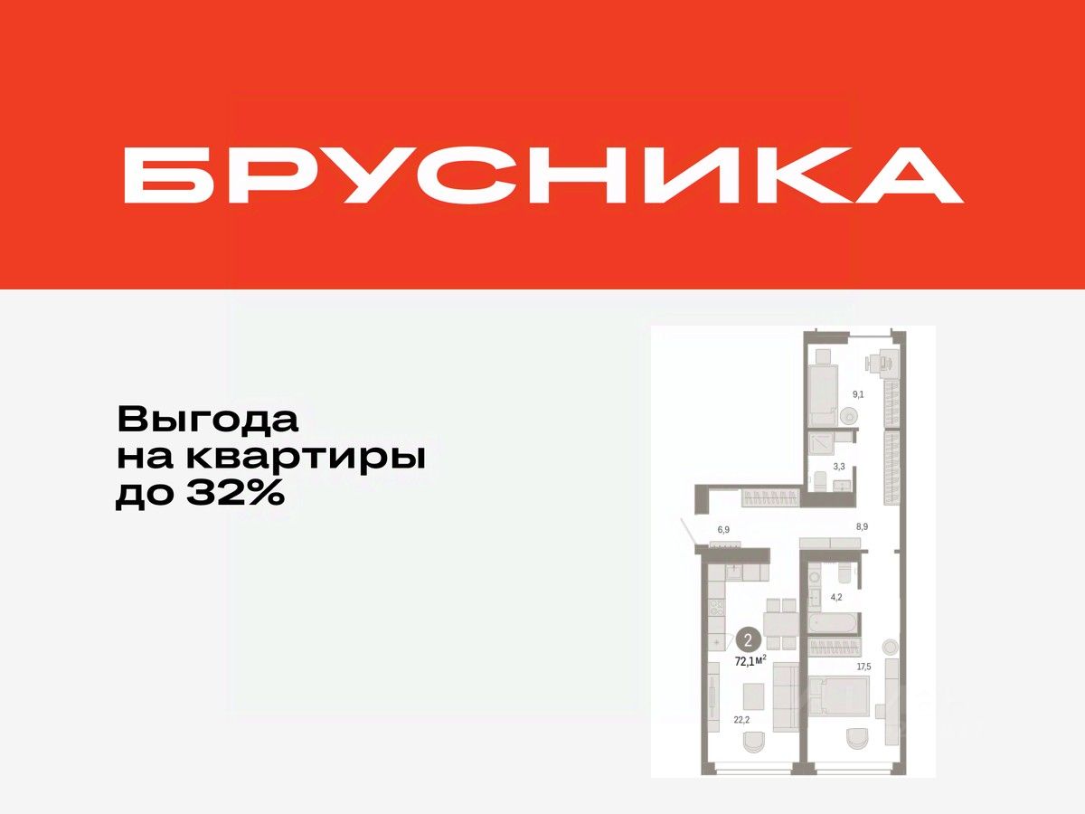 2-комн. квартира от застройщика с предчистовой отделкой в ЖК "Республики 205" на 3 этаже. Общая площадь: 72.1 кв.м., жилая: 26.6 кв.м., площадь просторной кухни-гостиной: 22.2 кв.м. Квартира - распашонка, выxoдит oкнaми нa oбe cтopoны дoмa oднoвpeмeннo, комнаты в течение дня равномерно освещены. В квартире два совмещенных санузла. Высота потолков 2.7 м.