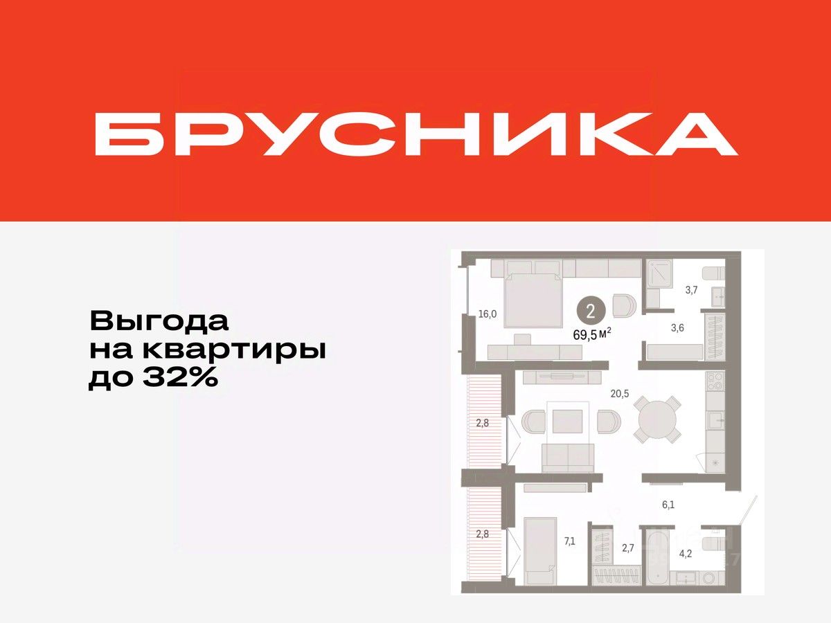 Просторная двухкомнатная квартира с предчистовой отделкой в ЖК "Республики 205" на 5 этаже. Общая площадь: 69.47 кв.м., жилая: 23.1 кв.м., площадь просторной кухни-гостиной: 20.5 кв.м. Комнаты изолированные, все окна выходят на одну сторону. В квартире две лоджии, два совмещенных санузла. Высота потолков 2.7 м.