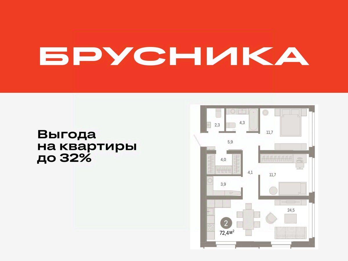 2-комн. квартира от застройщика с предчистовой отделкой в ЖК "Республики 205" на 14 этаже. Общая площадь: 72.39 кв.м., жилая: 23.4 кв.м., площадь просторной кухни-гостиной: 24.5 кв.м. Угловая квартира, идеально подойдет любителям тишины и панорамных видов. В квартире один совмещенный и один раздельный санузел. Высота потолков 2.7 м.