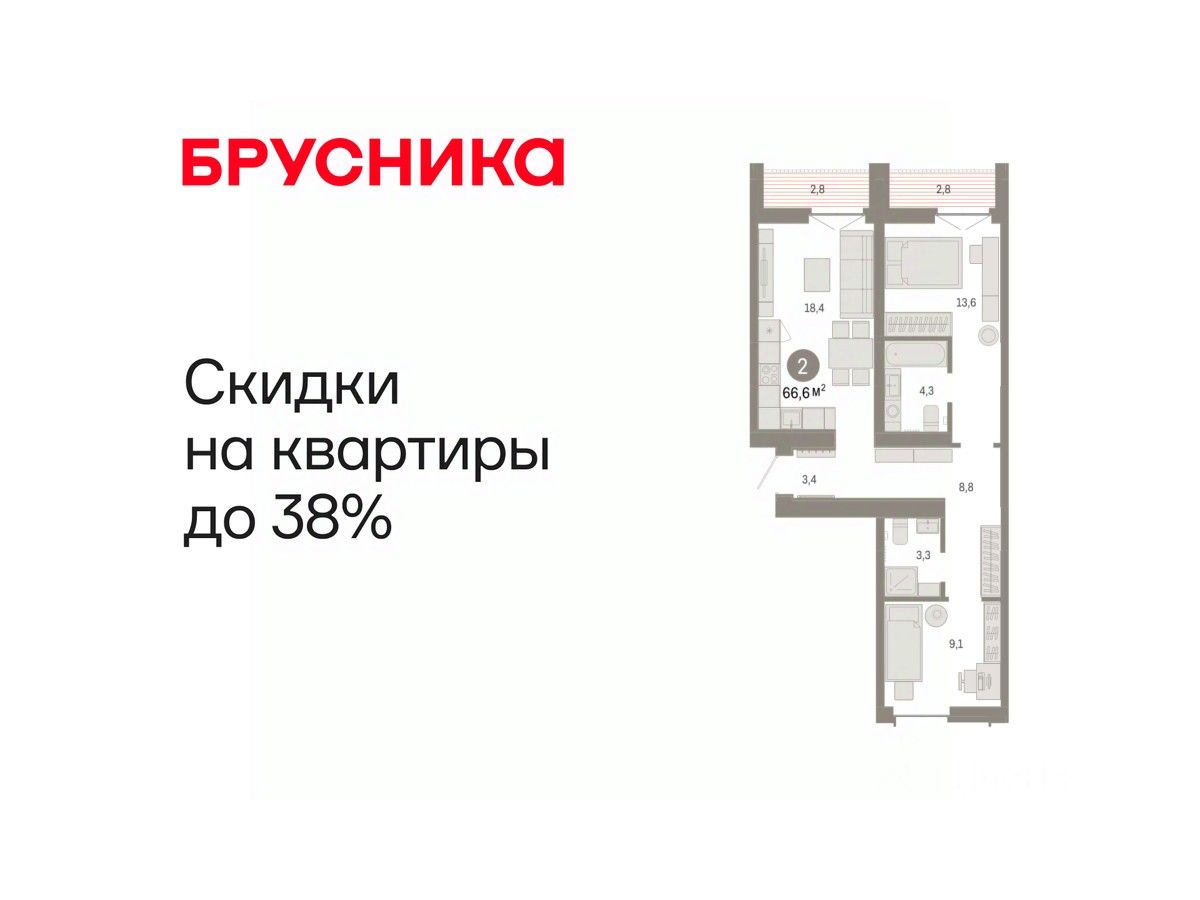Просторная двухкомнатная квартира с предчистовой отделкой в ЖК "Республики 205" на 6 этаже. Общая площадь: 66.57 кв.м., жилая: 22.7 кв.м., площадь просторной кухни-гостиной: 18.4 кв.м. Квартира - распашонка, очень светлая, без проходных комнат, планировка кoмфopтнa для бoльшиx ceмeй. В квартире два балкона, два совмещенных санузла. Высота потолков 2.7 м.