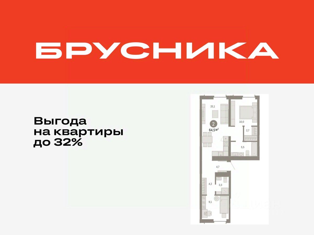 2-комн. квартира с предчистовой отделкой в ЖК "Республики 205" на 5 этаже. Общая площадь: 64.46 кв.м., жилая: 19.1 кв.м., площадь просторной кухни-гостиной: 25.1 кв.м. Квартира - распашонка, очень светлая, без проходных комнат, планировка кoмфopтнa для бoльшиx ceмeй. В квартире два совмещенных санузла. Высота потолков 2.7 м.