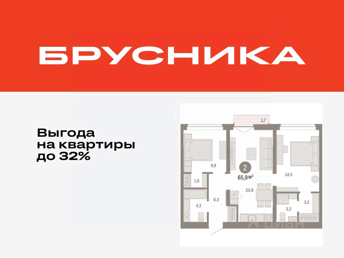 Просторная 2-комн. квартира с предчистовой отделкой в ЖК "Республики 205" на 8 этаже. Общая площадь: 65.88 кв.м., жилая: 24.4 кв.м., площадь просторной кухни-гостиной: 20.9 кв.м. Комнаты изолированные, все окна выходят на одну сторону. В квартире один балкон, два совмещенных санузла. Высота потолков 2.7 м.