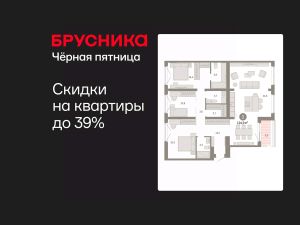 Квартира с кухней-гостиной и тремя спальнями в кварталах "На Минской". Особенности планировки: окна на две стороны, гардеробная, вид во двор, предчистовая отделка, мастер-спальня, постирочная, терраса на крыше.