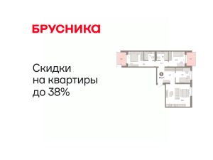 Квартира с кухней-гостиной и тремя спальнями в кварталах "На Минской". Особенности планировки: балкон, вид во двор, мастер-спальня, окна на две стороны, предчистовая отделка, разнесённые спальни.