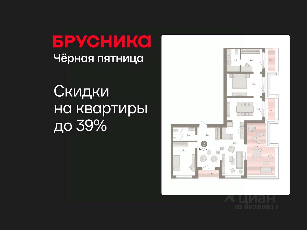 2-комн. квартира с предчистовой отделкой в Кварталы "На Минской" на 6 этаже. Общая площадь: 146.03 кв.м. Высота потолков 2.7 м.