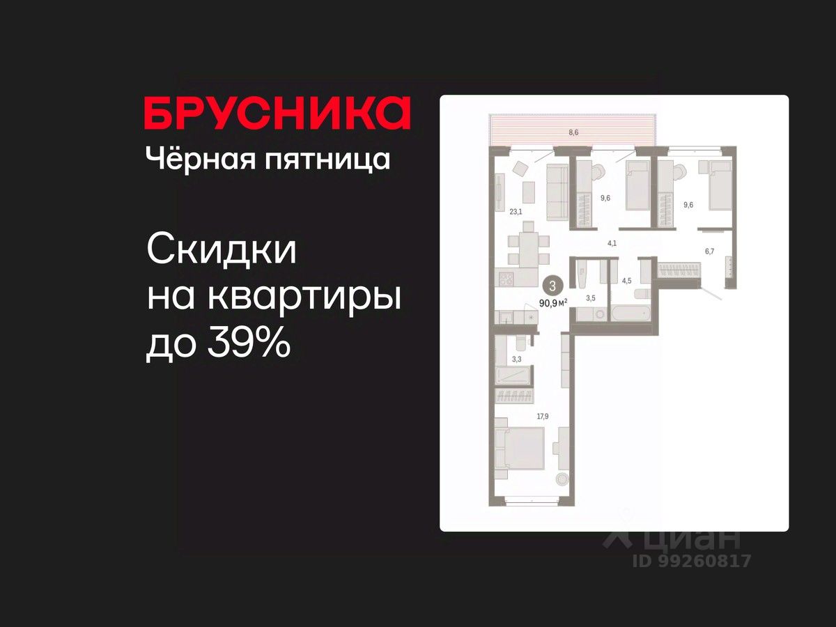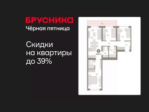 Квартира с кухней-гостиной и тремя спальнями в кварталах "На Минской". Особенности планировки: окна на две стороны, вид во двор, разнесённые спальни, предчистовая отделка, мастер-спальня, постирочная, балкон.