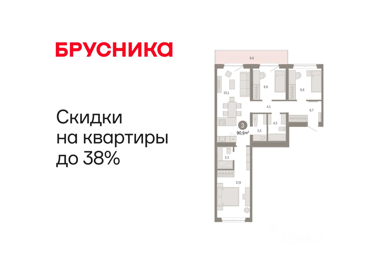 Трехкомнатная квартира с предчистовой отделкой в Кварталы "На Минской" на 5 этаже. Общая площадь: 90.87 кв.м., жилая: 37.1 кв.м., площадь просторной кухни-гостиной: 23.1 кв.м. Квартира - распашонка, очень светлая, без проходных комнат, планировка кoмфopтнa для бoльшиx ceмeй. В квартире один балкон, два совмещенных санузла. Наличие в квартире террасы дает возможность для обустройства дополнительной площади. Высота потолков 2.7 м.