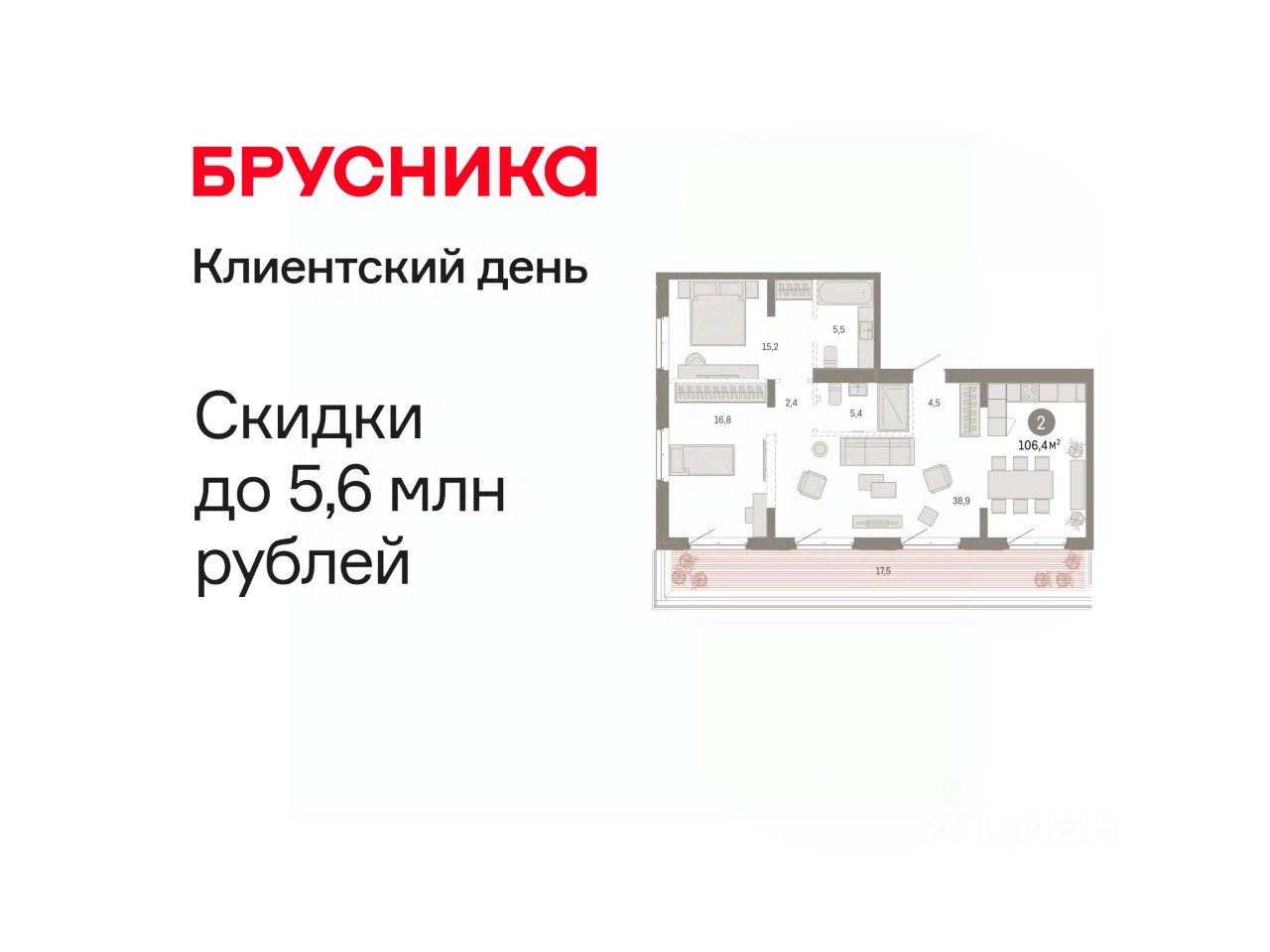 Квартира с кухней-гостиной и двумя спальнями в кварталах "На Минской". Особенности планировки: мастер-спальня, потолки 3 м и выше, предчистовая отделка, терраса на крыше.