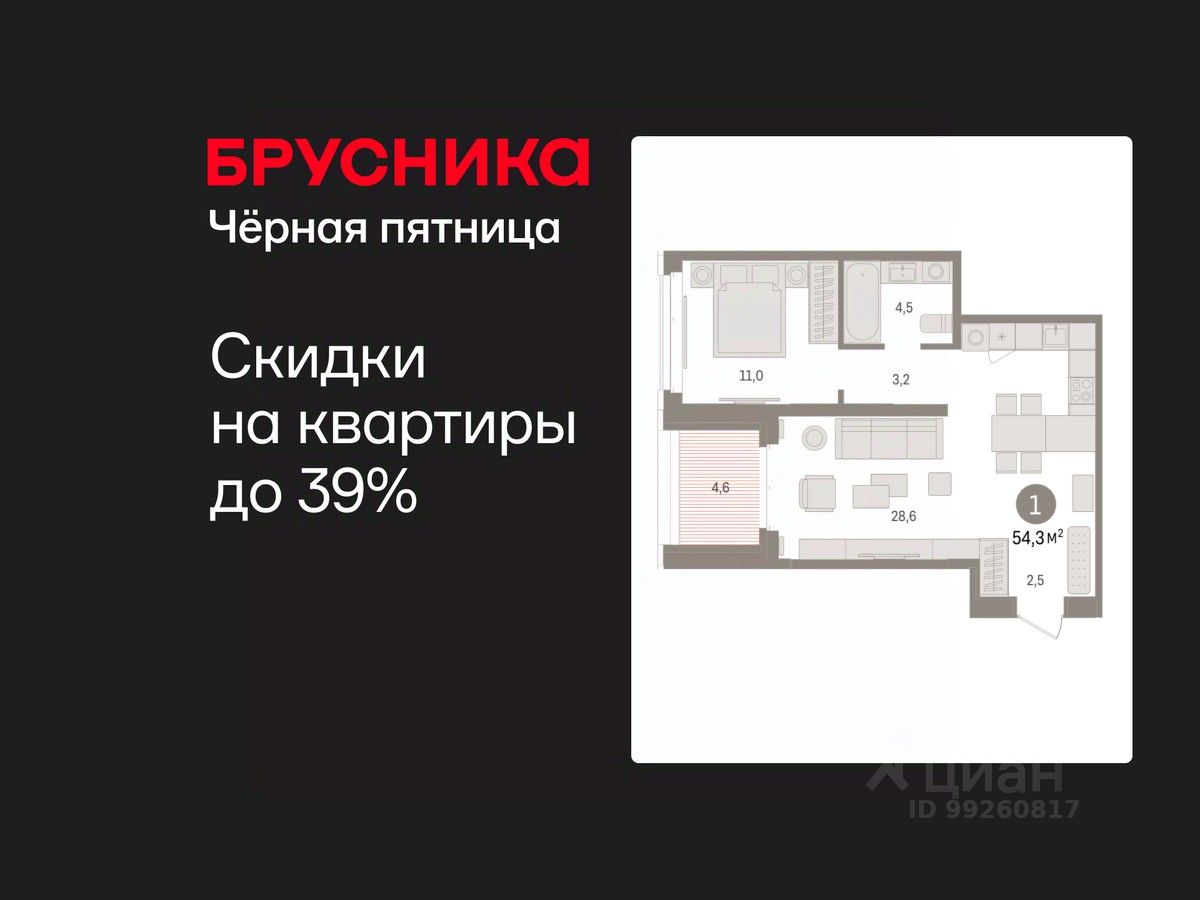 Продается 1-комн. квартира с предчистовой отделкой в Кварталы "На Минской" на 11 этаже. Общая площадь: 54.34 кв.м., жилая: 11 кв.м., площадь просторной кухни-гостиной: 28.6 кв.м. Все окна выходят на одну сторону. В квартире одна лоджия, один совмещенный санузел. Высота потолков 2.7 м.