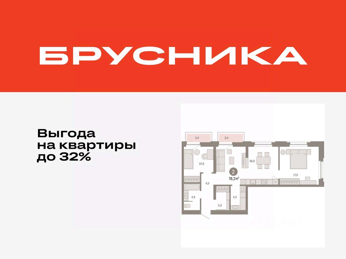Продается 2-комн. квартира с предчистовой отделкой в ЖК "Зарека" на 5 этаже. Общая площадь: 78.19 кв.м., жилая: 27.6 кв.м., площадь просторной кухни-гостиной: 26.8 кв.м. Квартира угловая, окна oбecпeчивaют paвнoмepнoe ocвeщeниe в тeчeниe дня. В квартире два балкона, один совмещенный санузел. Высота потолков 2.7 м.
