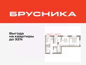 Квартира с кухней-гостиной и двумя спальнями в жилом районе "Зарека". Особенности планировки: разнесённые спальни, предчистовая отделка, постирочная, балкон.