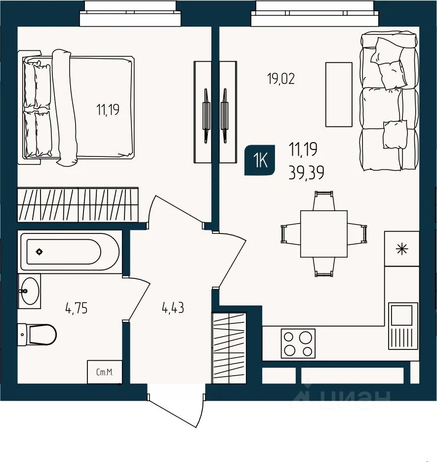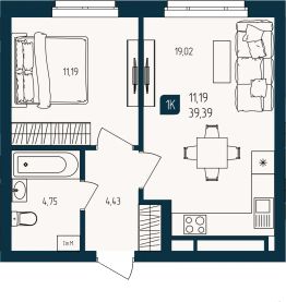 Продаётся 1-комнатная квартира в строящемся доме (Дом Каскад (ГП-2)), срок сдачи: III-кв. 2027, общей площадью 39.39 кв.м., на 2 этаже. Новый жилой комплекс "Квартал Мятный" от Специализированного застройщика "Юпитер" расположен по адресу: г. Тюмень по ул. Кулибина.