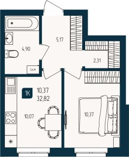 Продаётся 1-комнатная квартира в строящемся доме (Дом Каскад (ГП-2)), срок сдачи: III-кв. 2027, общей площадью 32.82 кв.м., на 2 этаже. Новый жилой комплекс "Квартал Мятный" от Специализированного застройщика "Юпитер" расположен по адресу: г. Тюмень по ул. Кулибина.