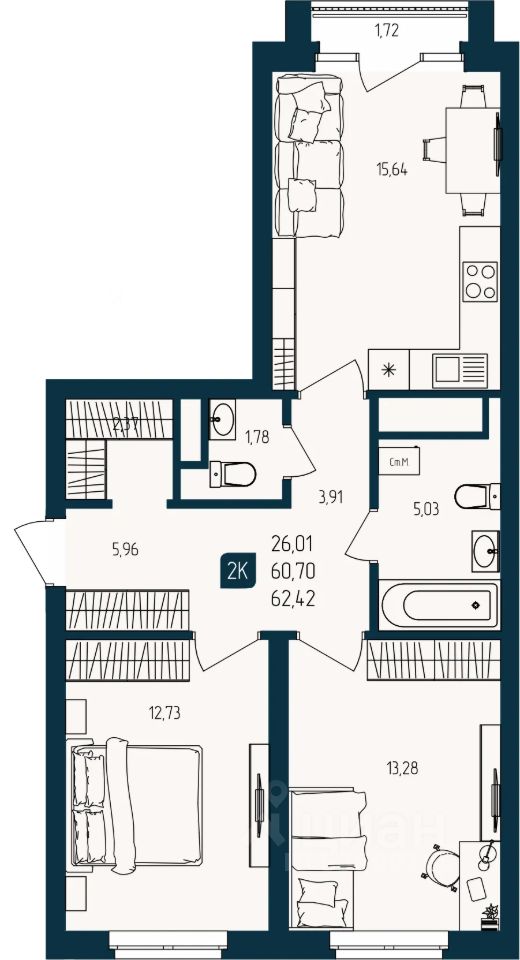 Продаётся 2-комнатная квартира в строящемся доме (Дом Каскад (ГП-2)), срок сдачи: III-кв. 2027, общей площадью 60.7 кв.м., на 14 этаже. Новый жилой комплекс "Квартал Мятный" от Специализированного застройщика "Юпитер" расположен по адресу: г. Тюмень по ул. Кулибина.