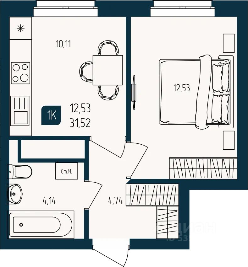 Продаётся 1-комнатная квартира в строящемся доме (Дом Каскад (ГП-2)), срок сдачи: III-кв. 2027, общей площадью 31.52 кв.м., на 19 этаже. Новый жилой комплекс "Квартал Мятный" от Специализированного застройщика "Юпитер" расположен по адресу: г. Тюмень по ул. Кулибина.