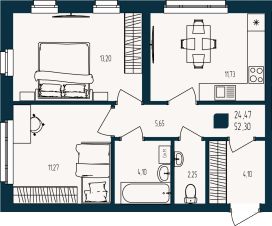 Продаётся 2-комнатная квартира в строящемся доме (Дом Башня (ГП-1)), срок сдачи: III-кв. 2027, общей площадью 52.3 кв.м., на 1 этаже. Новый жилой комплекс "Квартал Мятный" от Специализированного застройщика "Юпитер" расположен по адресу: г. Тюмень по ул. Кулибина.