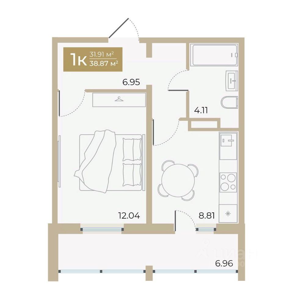 Общая площадь31,91 м²